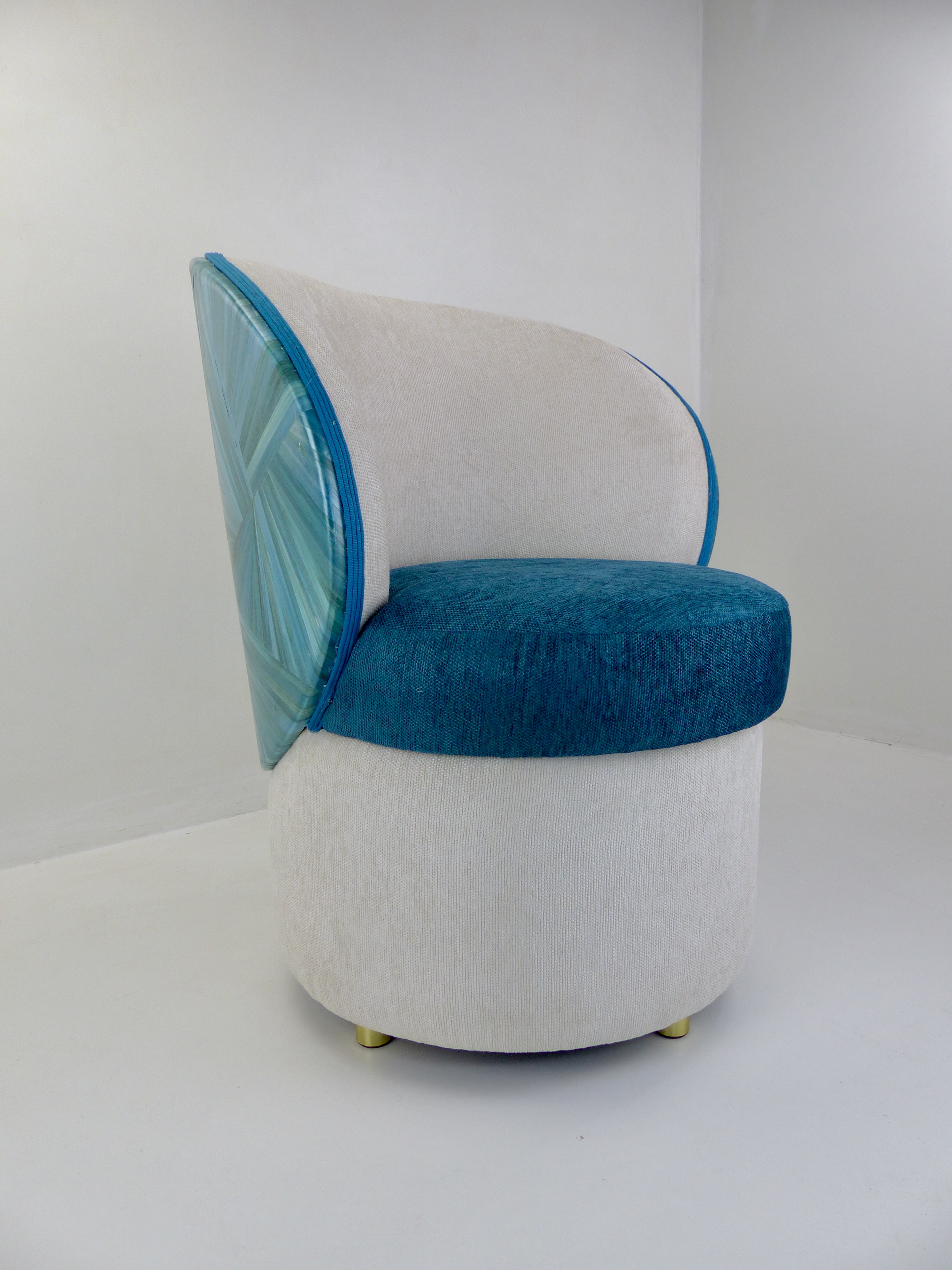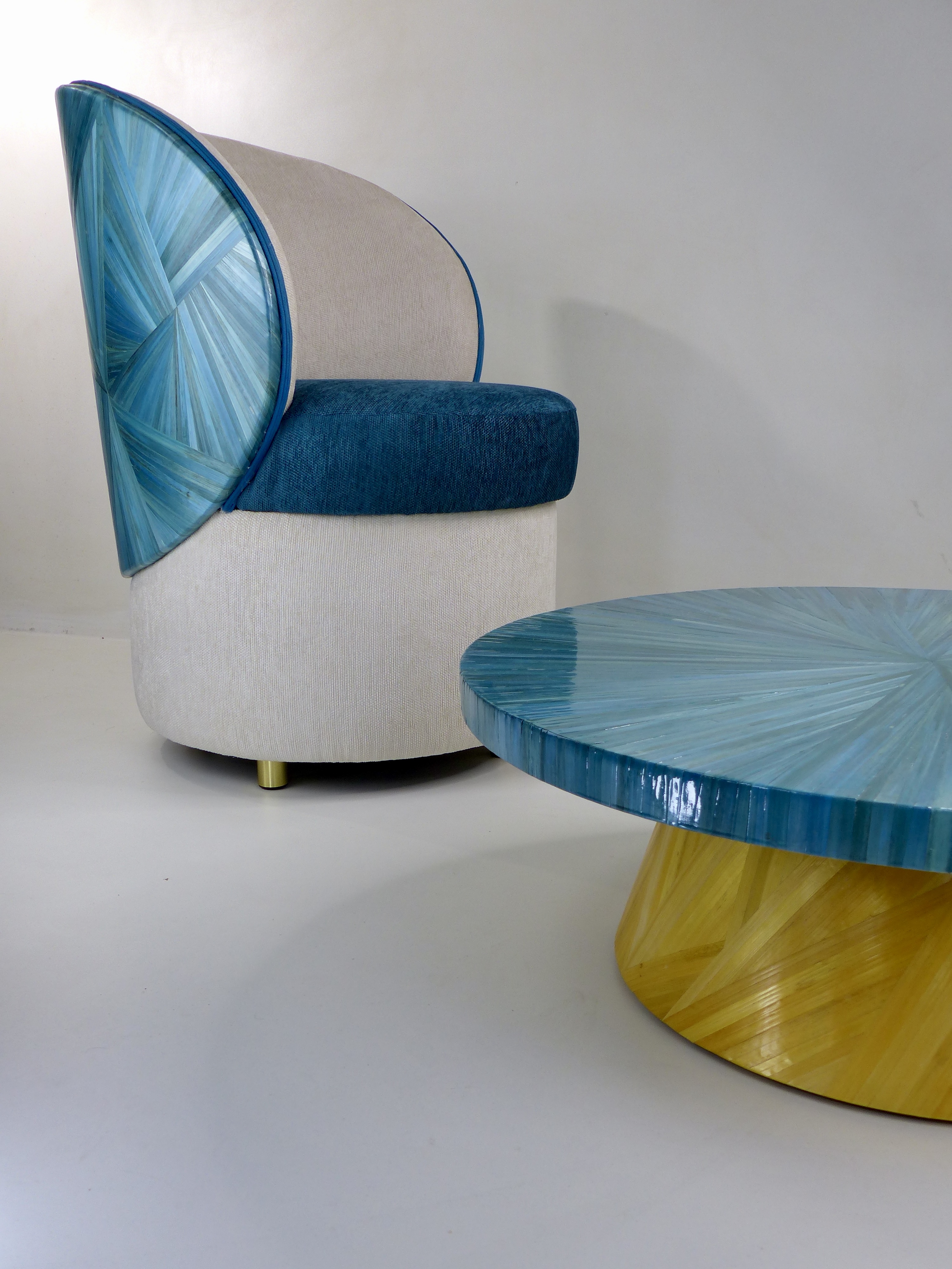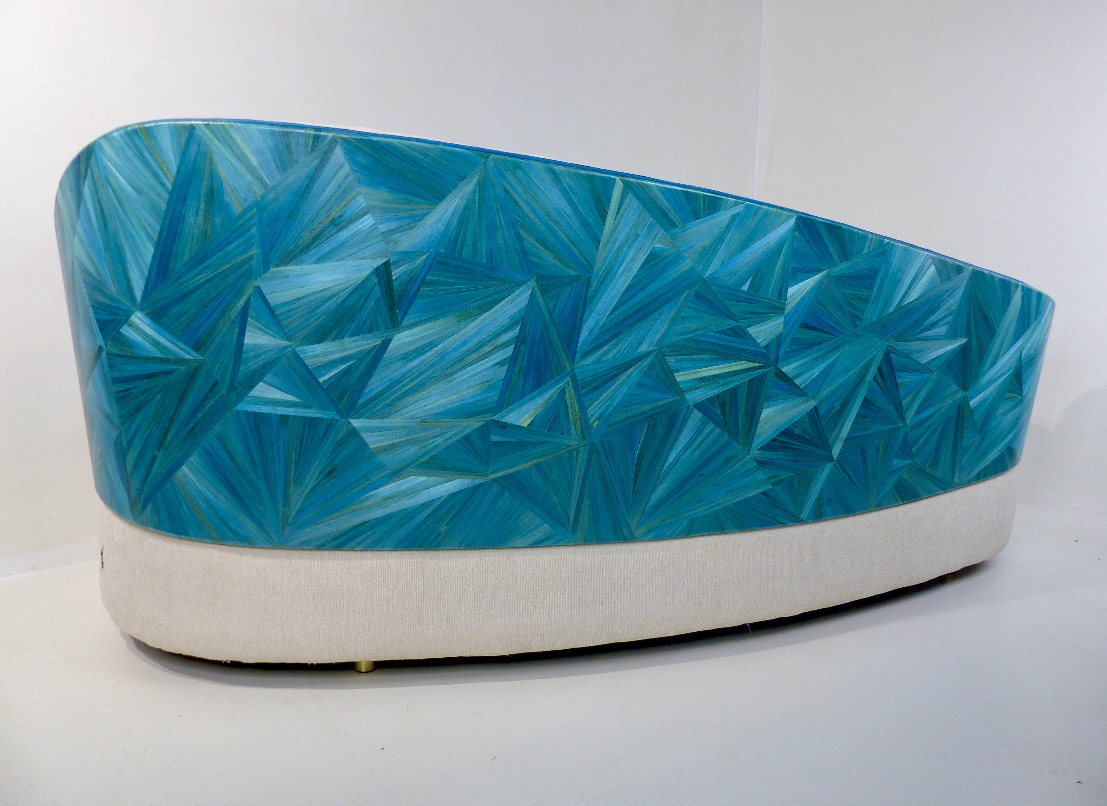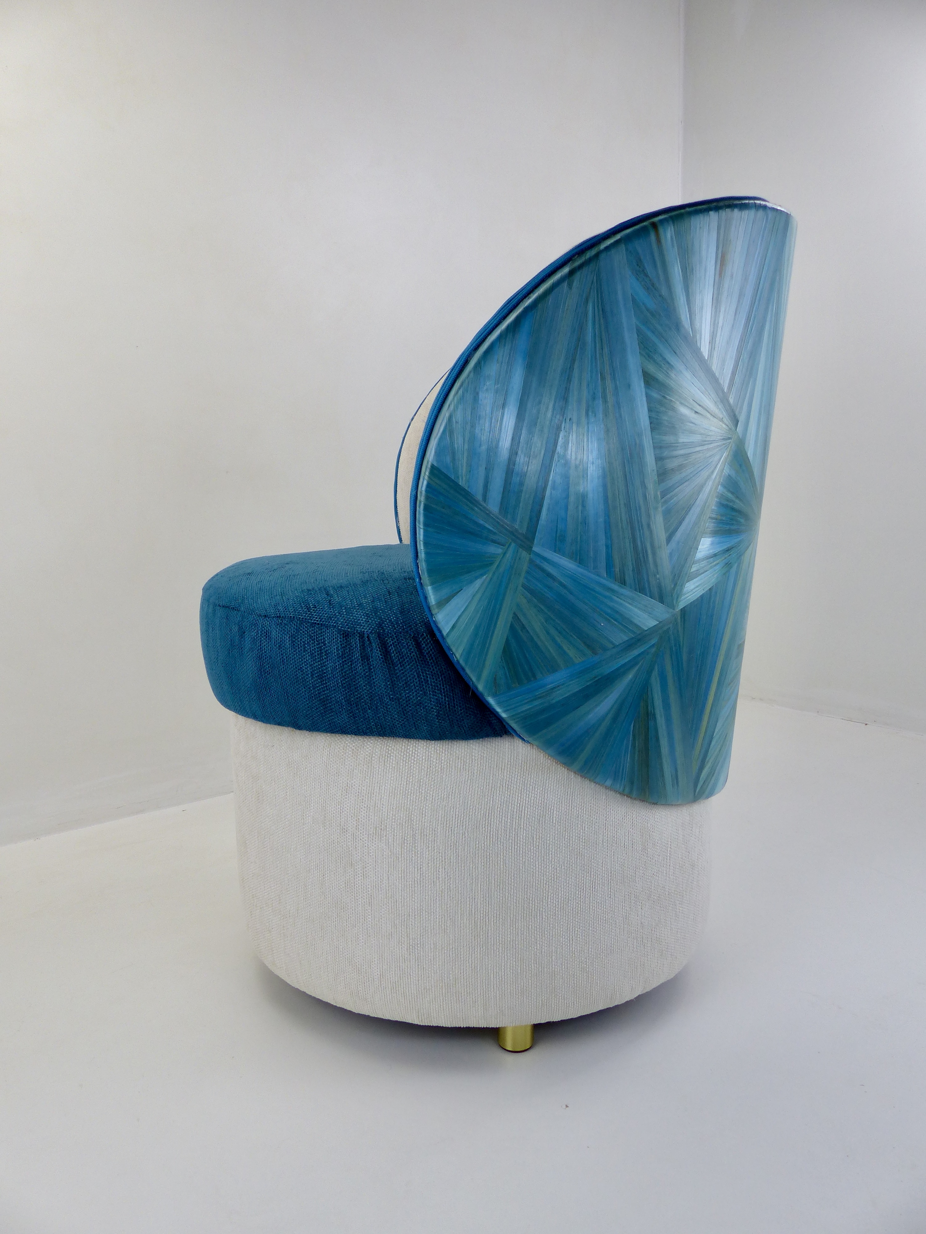 Conçue pour évoquer la beauté envoûtante de la mer Méditerranée, son dos tout en courbes est magnifiquement recouvert de marqueterie de paille de couleur bleu azur. Cette finition délicate rappelle les nuances profondes et scintillantes de nos côtes, apportant une atmosphère apaisante à votre espace.